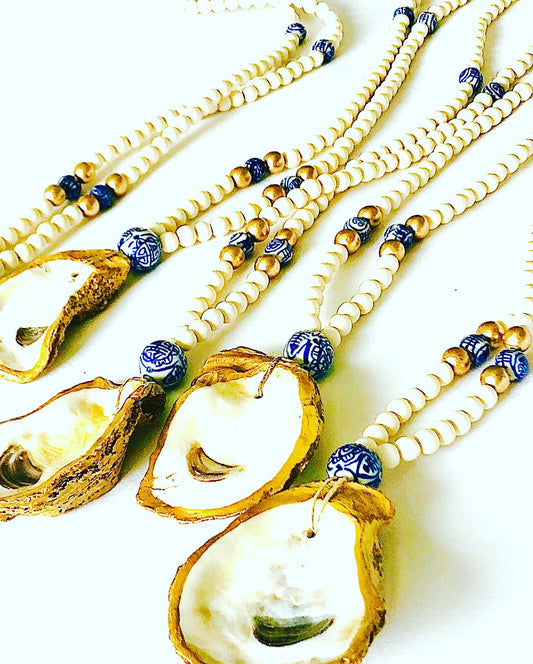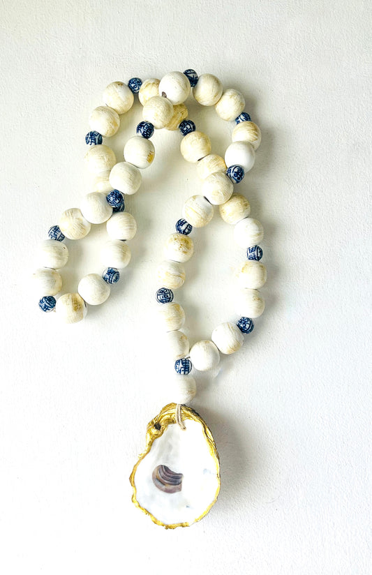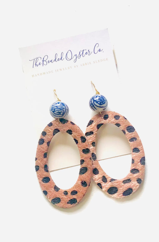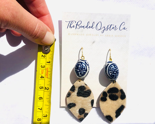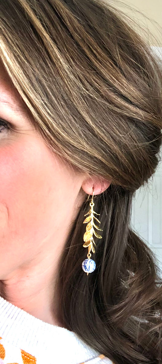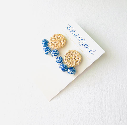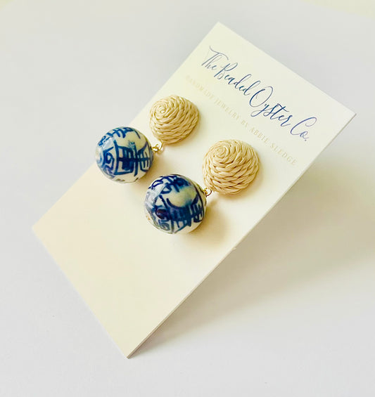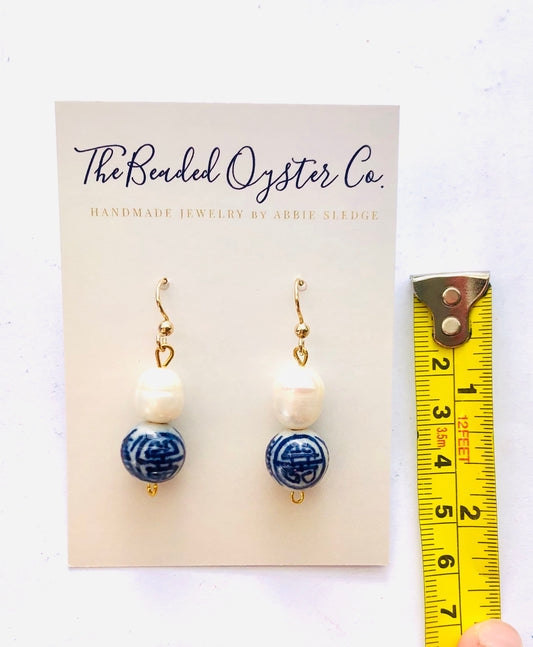Blue and White Chinoiserie and Freshwater Pearl Drop Earring