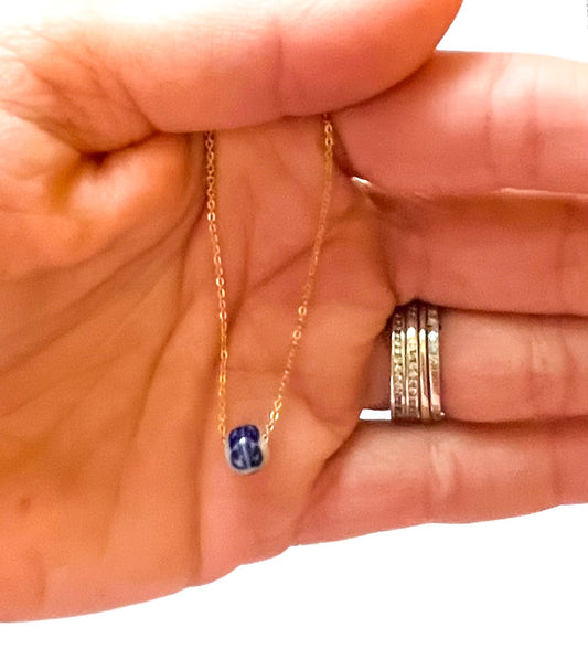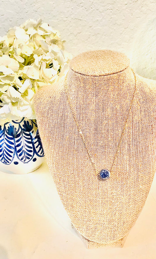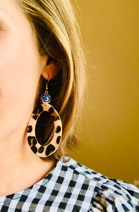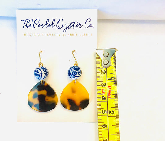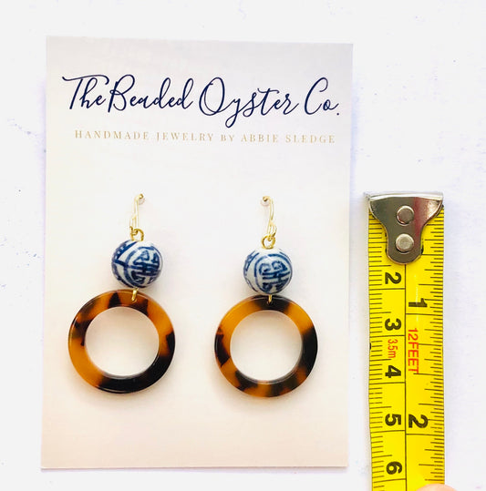 Blue and White Chinoiserie and Tortoise Shell Earrings- Small Hoop