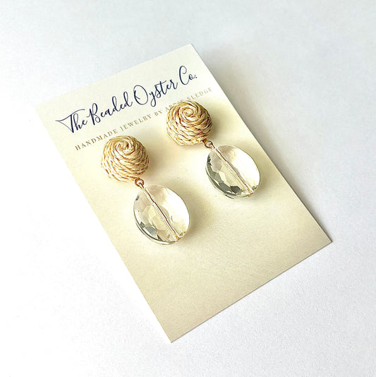 Blue and White Chinoiserie and Freshwater Pearl Drop Earring
