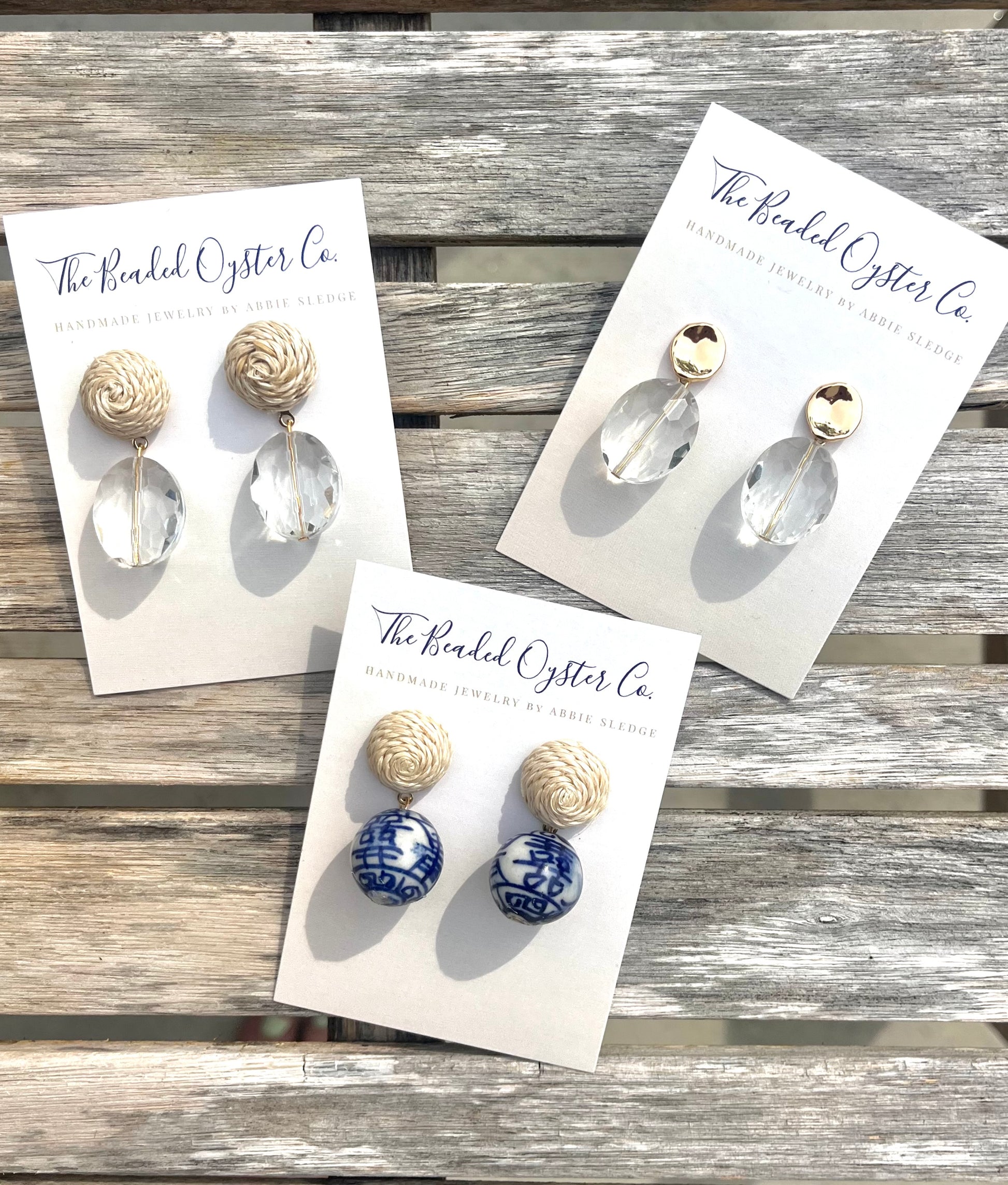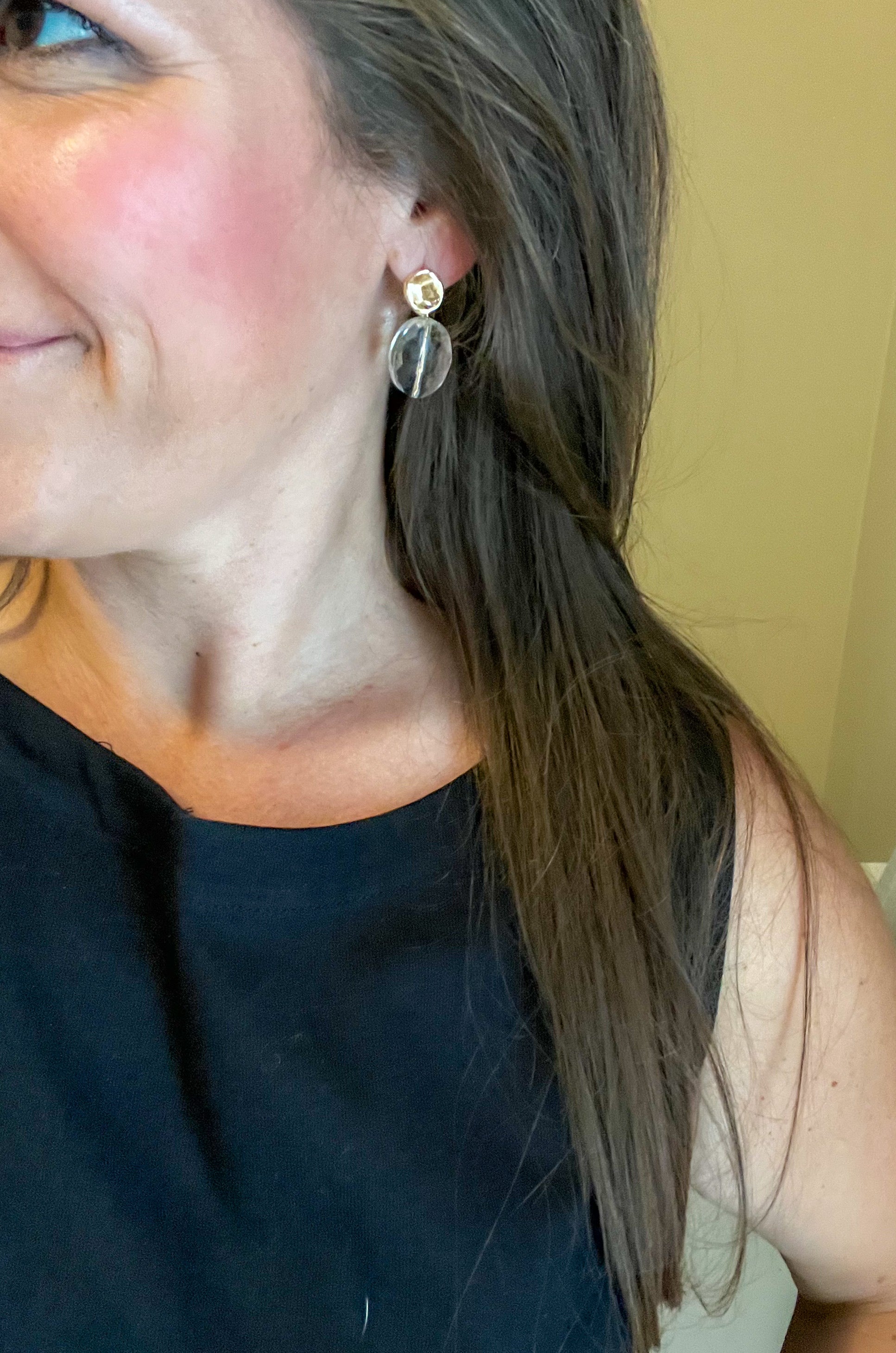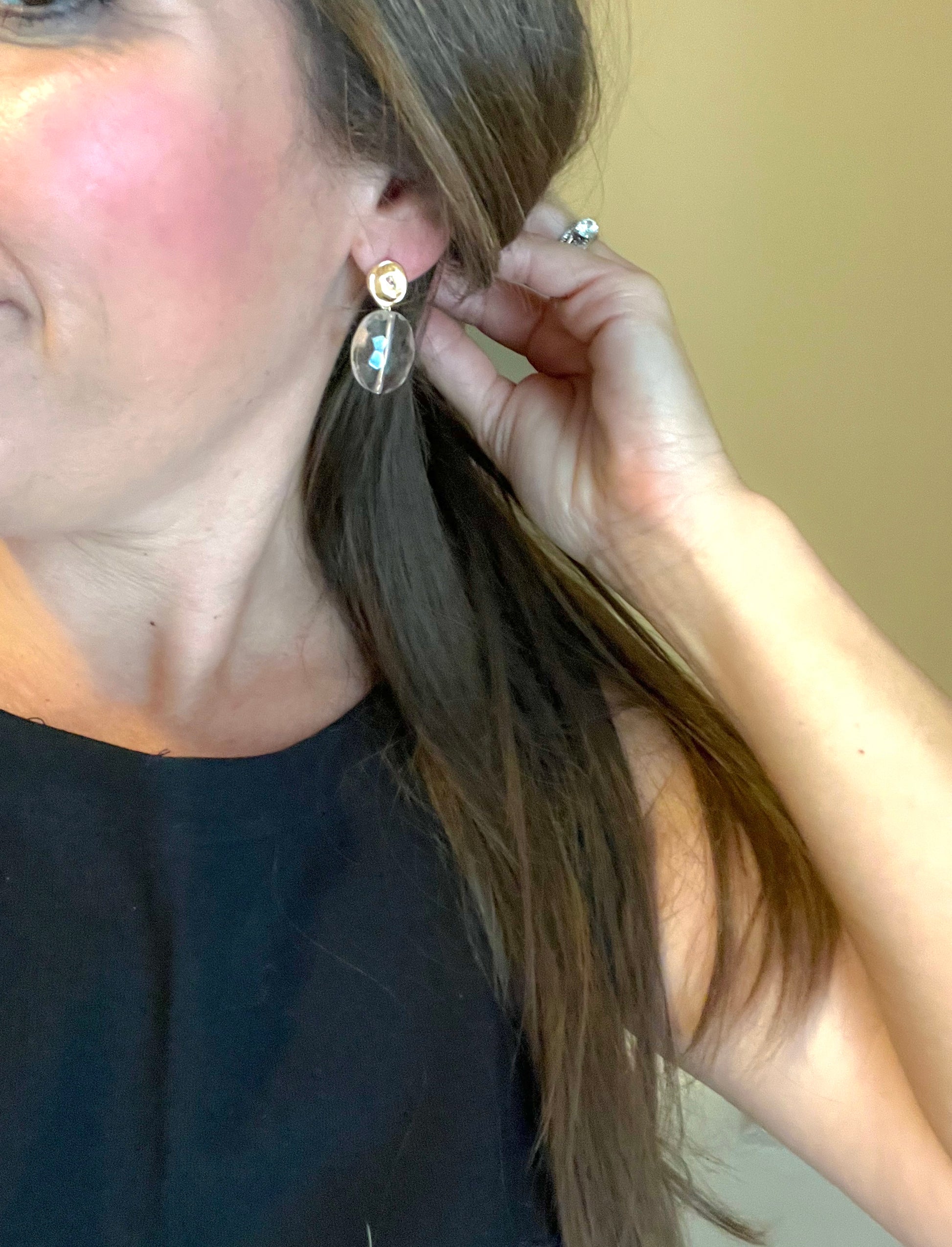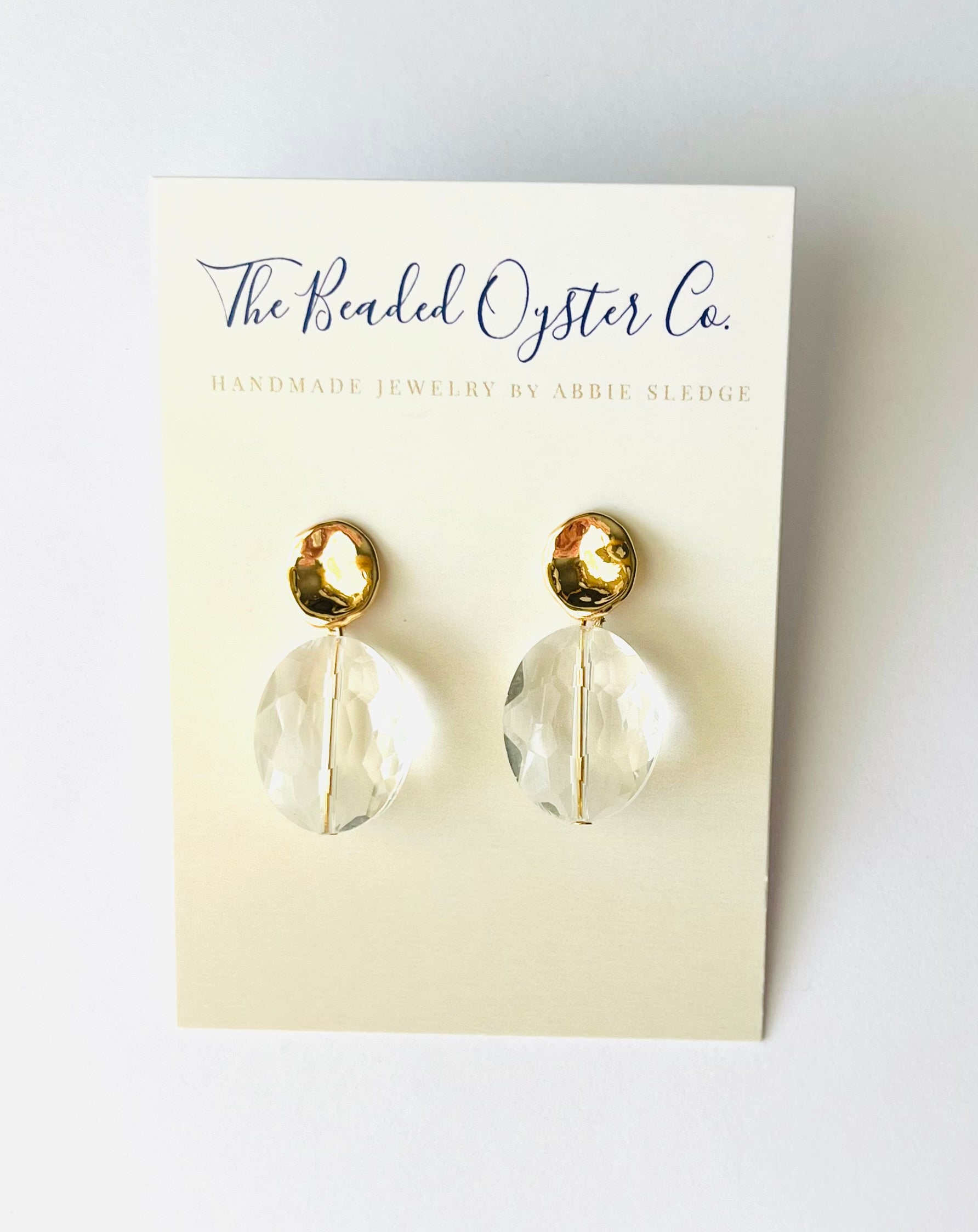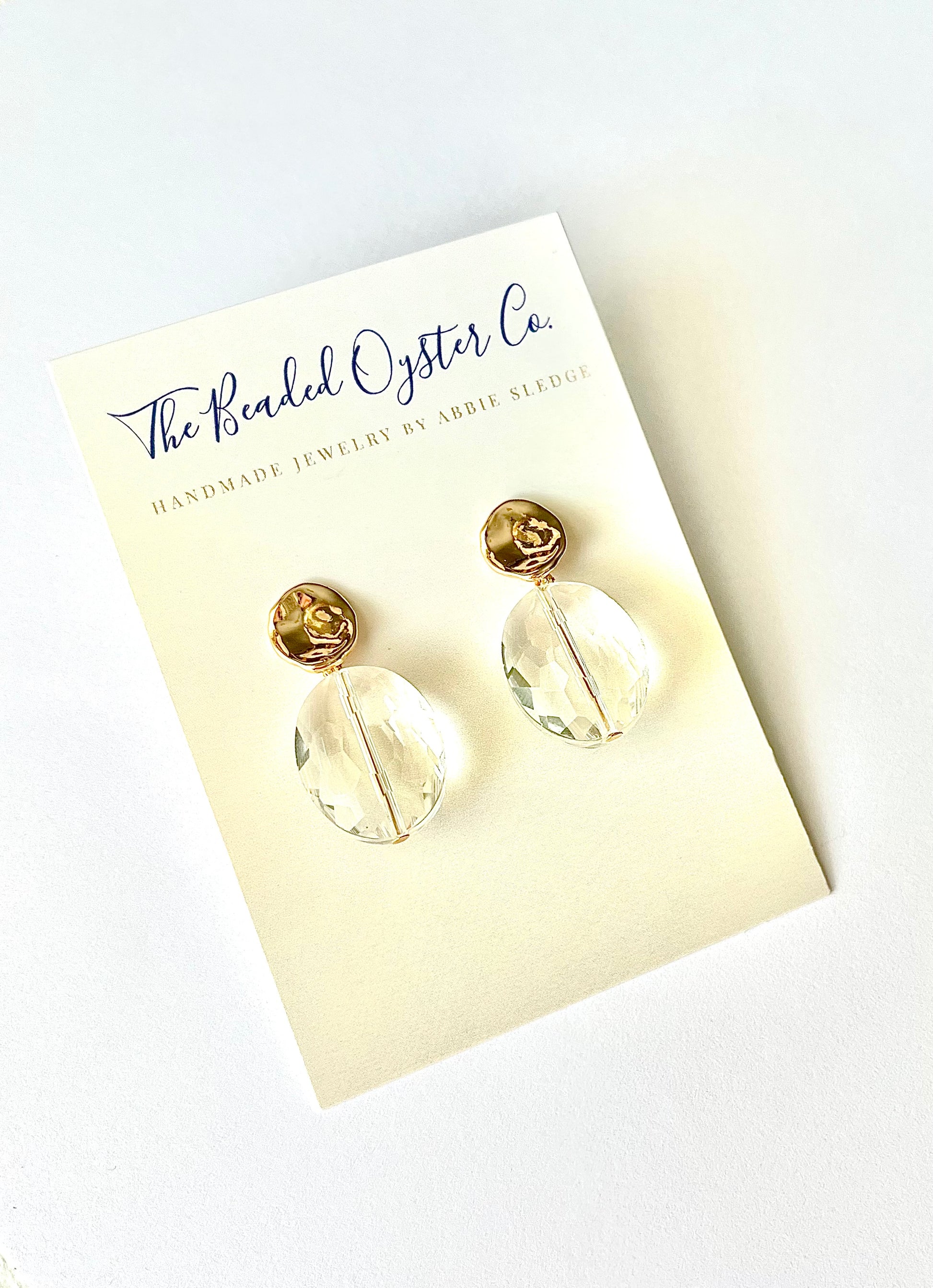 The Sloane earrings are made with a gold plated earring post and a clear faceted crystal bead.