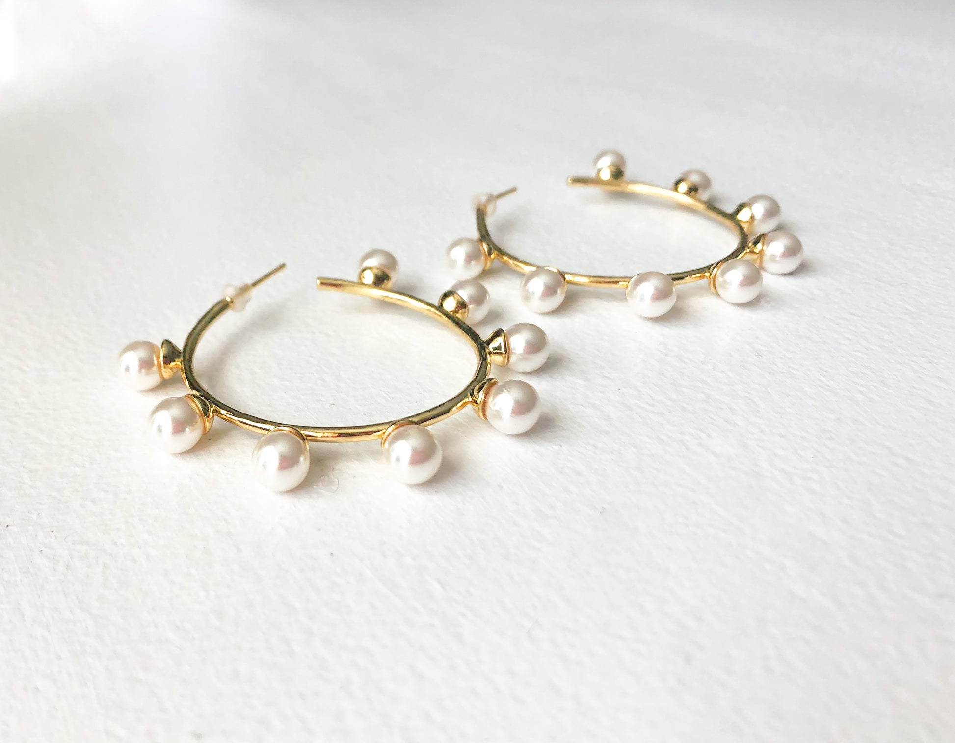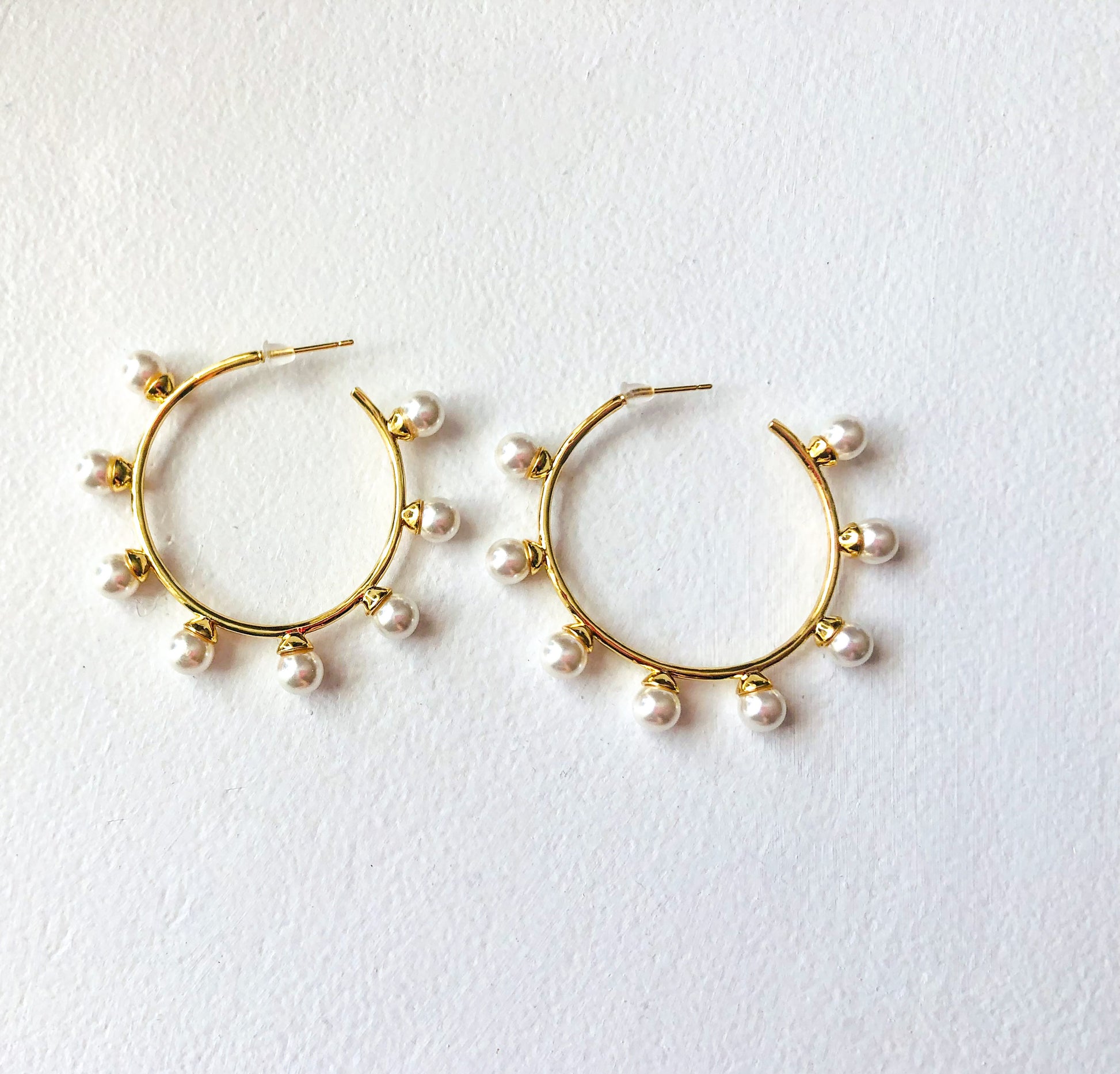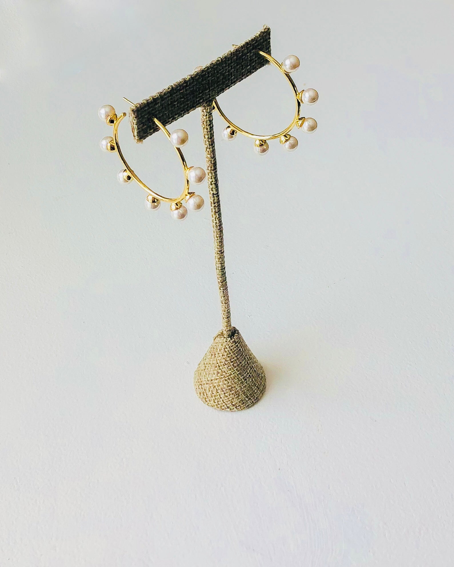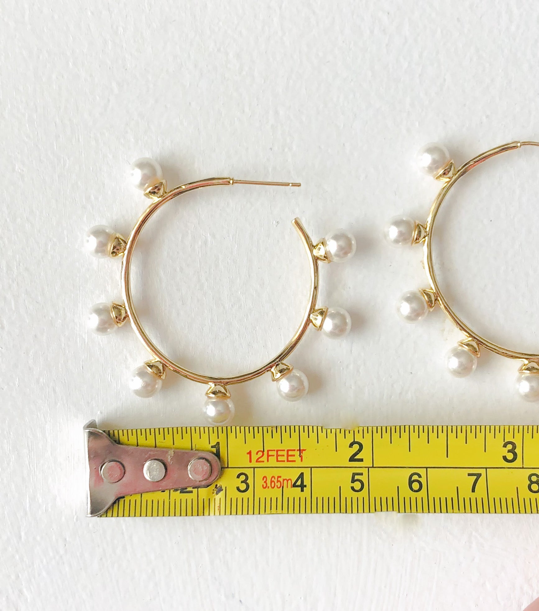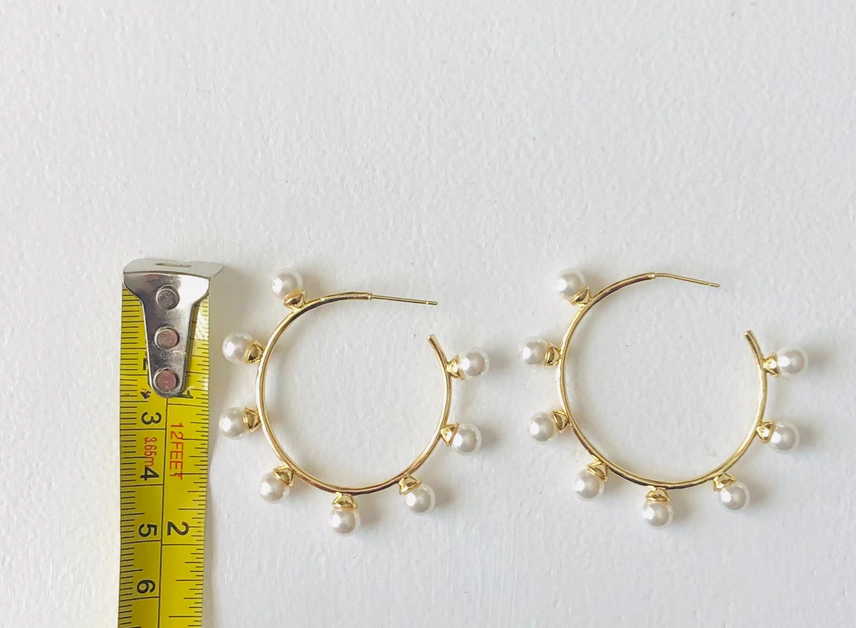 These are brass stud earrings that are 18k gold plated with a shell pearl. They are 45.5mm in size.